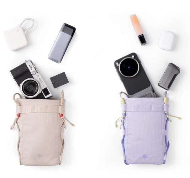 スマートフォンやコンパクトカメラを収納でき、撮影機材から日常の小物まで身軽に持ち運びできます。デザインはマイクロファイバー素材を採用したヴィンテージ調のClassicと、ドローストリング仕様で縦入れできるCasualの2種をラインナップ。バッグ内部は整理しやすい仕切り設計で、機材をスムーズに出し入れできます。