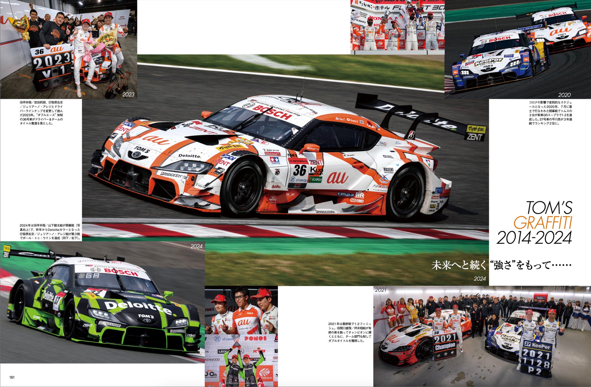 巻頭では、トヨタ自動車株式会社 代表取締役会長の豊田章男氏と株式会社トムス 取締役会長ファウンダーの舘信秀氏のビッグ対談を実現。また、50年の歴史を写真で振り返る「トムスグラフィティ」のほか、トムスの歴史を彩った名車ヒストリーや関係者13名によるエピソード集などを掲載。さらに特別読物「トムスの栄光秘話」では、英国進出の全貌やマカオに託した「夢」をテーマに掘り下げています。