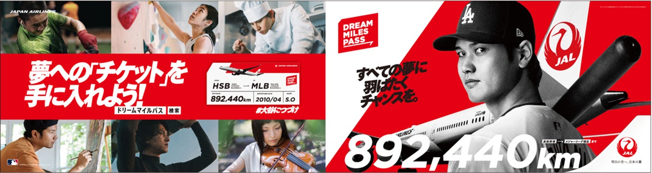 JALは、サポート契約を結ぶ米MLBロサンゼルス・ドジャースで活躍する大谷選手が、花巻東高校入学から現在に至るまで、地球22周分ほどになる892,440kmもの「移動」を重ね、さまざまな夢を叶えてきたという事実に着目。「すべての夢に、羽ばたくチャンスを。」というメッセージを掲げ、この大谷選手の総移動距離をベースとして、これから夢の実現のために移動が必要な若者たちに、それぞれの出発地から目的地までの航空券(※2)を提供します。