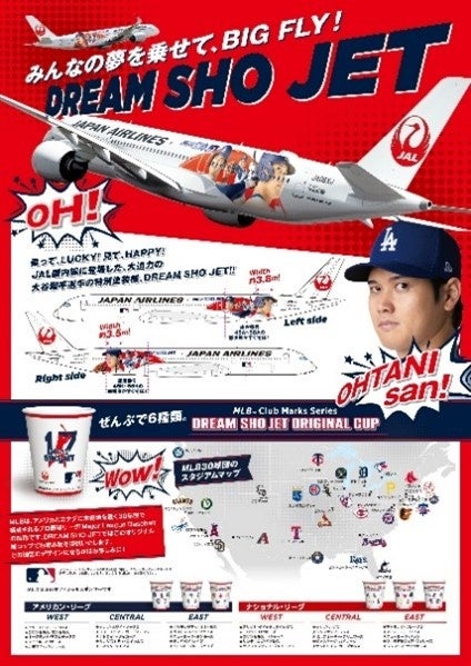 本プロジェクトのシンボルとして、9月29日(日)より大谷選手のデザインを施した特別塗装機「DREAM SHO JET」を就航します。この「DREAM SHO JET」は、「DREAM MILES PASS」プロジェクトに込めた想いと同様、夢を追う若者たちを応援したいという大谷選手・JMB会員・そしてJALの想いと共に、2026年3月ごろまで就航を予定しています。また、「DREAM SHO JET」限定の紙コップ、機内リーフレットなどの機内品も搭載します。