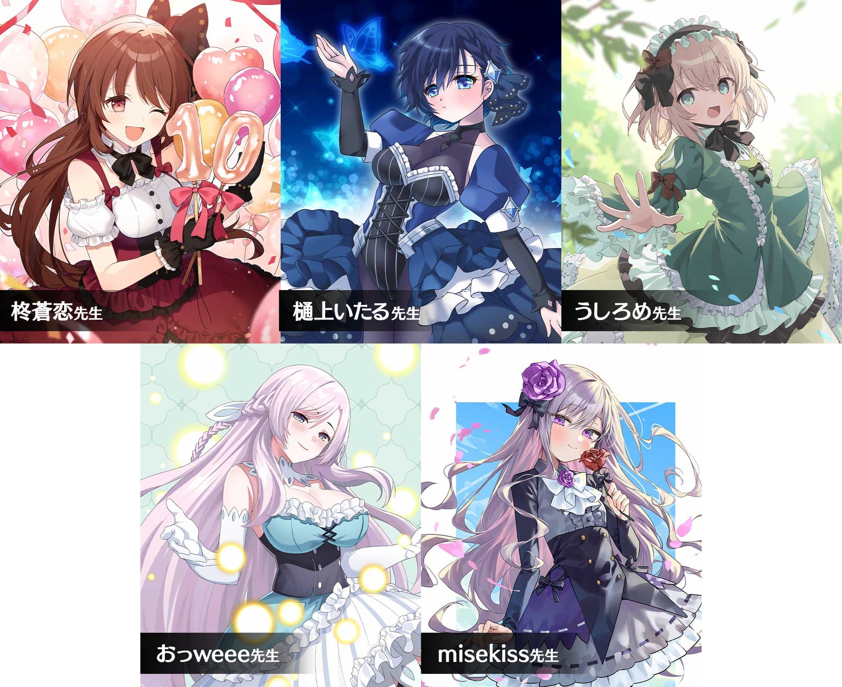 乙女編では、柊蒼恋先生、樋上いたる先生、うしろめ先生、おっweee先生、misekiss先生描き下ろしの5乙女が登場します。