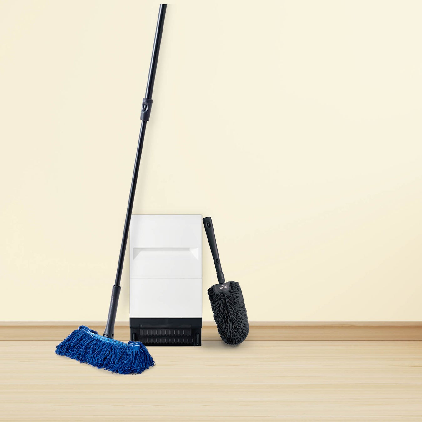 フローリングや棚等のホコリ取りに便利な大人気のダスキンモップ2本とモップクリーナーの3点セット