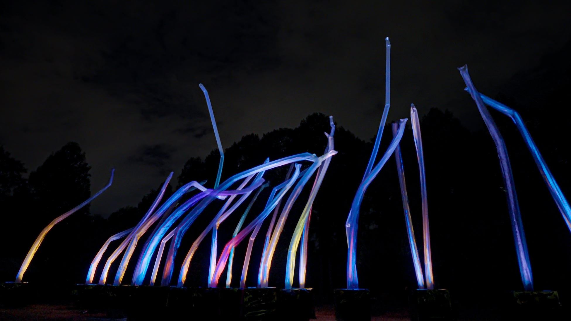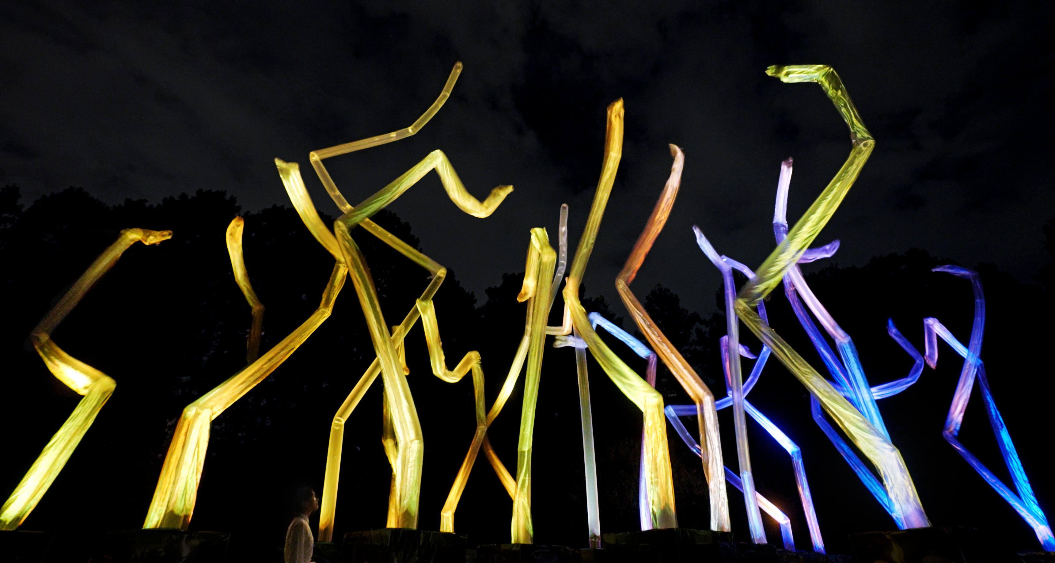 また、《光色の草原 - カピラリス》の作品エリアが拡張されました。カピラリスの光は、人々が近くで立ち止まると、さらに強く輝き、音色を響かせます。そして、その光は、周辺のカピラリスへ伝播し、音色を響かせながら、連続していきます。