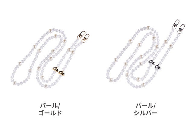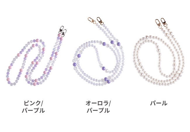 ・カラー展開:・ショルダービーズストラップ:ピンク/パープル、オーロラ/パープル、パール、パール/ゴールド、パール/シルバー