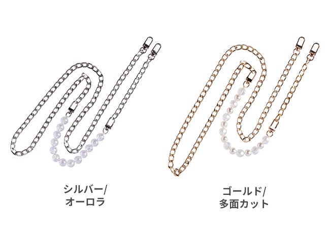 ・ショルダーチェーンストラップ:シルバー/オーロラ、ゴールド/多面カット