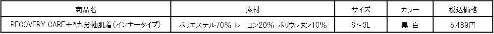 「RECOVERY CARE+®九分袖肌着(インナータイプ)」商品特長