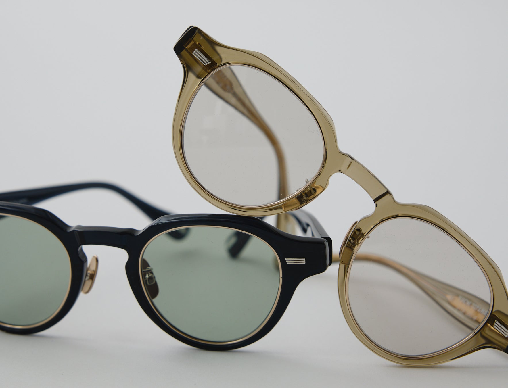 ミニマムな構造がゆえにレンズシェイプの美しさを最大限に引き立たせる普遍的なデザイン。フレンチヴィンテージのクラウンパントシェイプをベースにしながら、アセテートのフレームにメタルのインナーリムを取り入れることで、カジュアルでありながら目元にメタルの上品な質感をもたらせたデザインになっています。