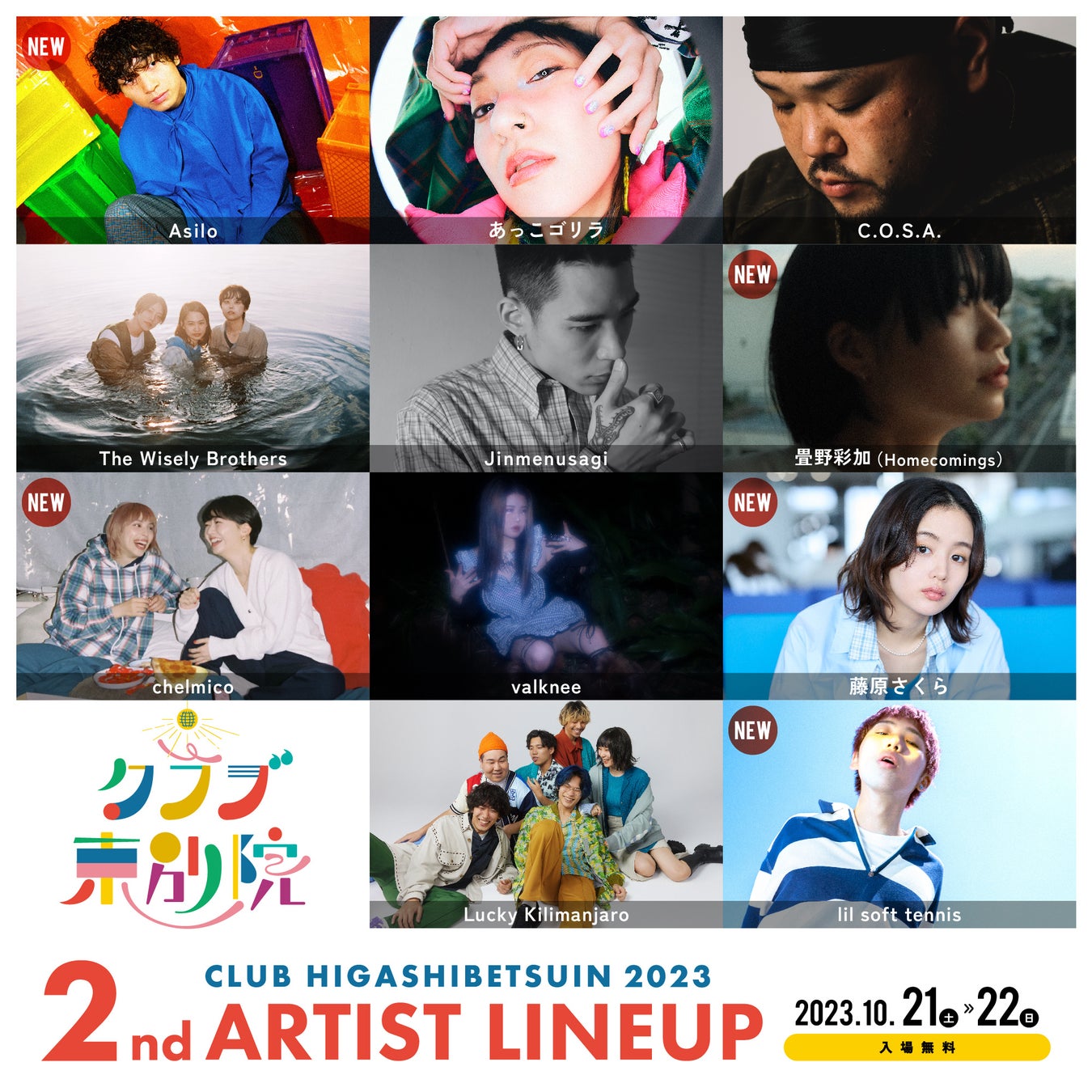 Asilo / あっこゴリラ / C.O.S.A. / The Wisely Brothers / Jinmenusagi / 畳野彩加(Homecomings) / chelmico / valknee / 藤原さくら / Lucky Kilimanjaro / lil soft tennis / and more...