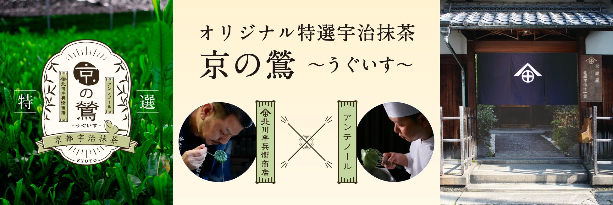 京都宇治の老舗茶問屋「北川半兵衞商店」とアンテノールのパティシエが、作り上げた独自のブレンドによる宇治抹茶『京の鶯~うぐいす~』。