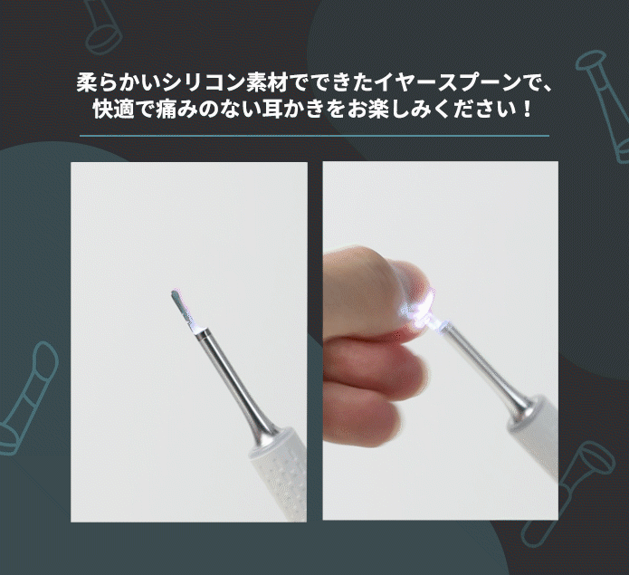 柔らかいシリコン素材でできたイヤースプーンで、快適で痛みのない耳かきをお楽しみください!
