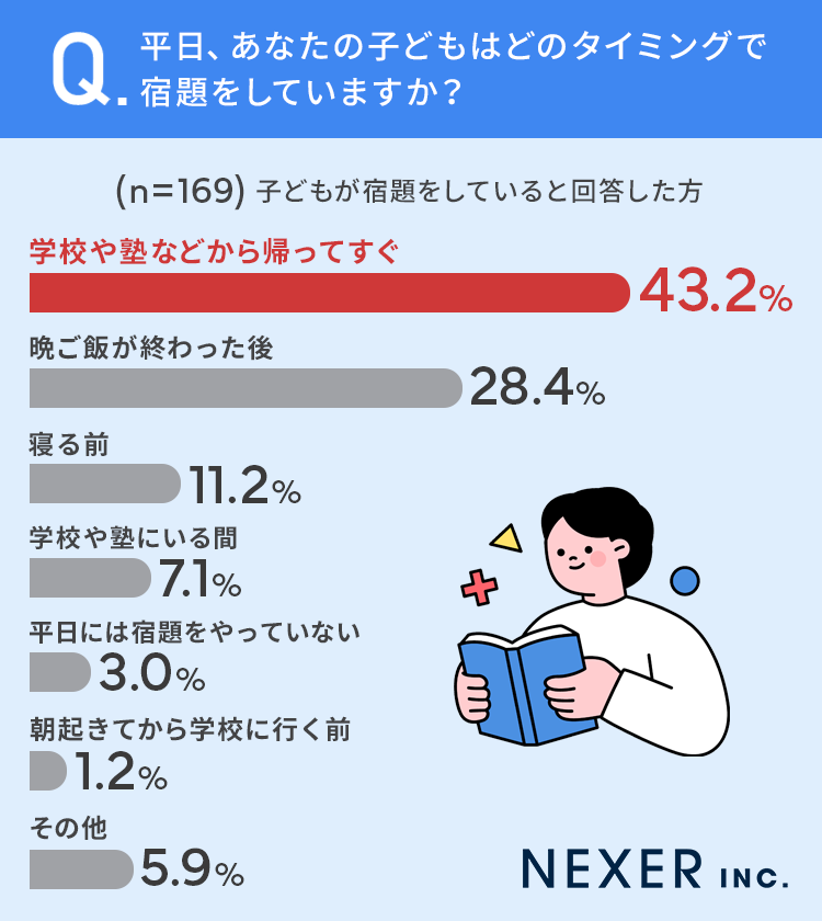 ■43.2%が「学校や塾などから帰ってすぐ」宿題をしている