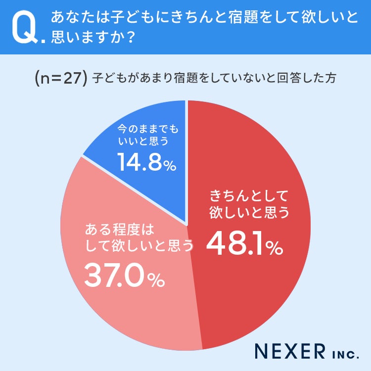 48.1%の方が「宿題はきちんとして欲しいと思う」と回答しています。
