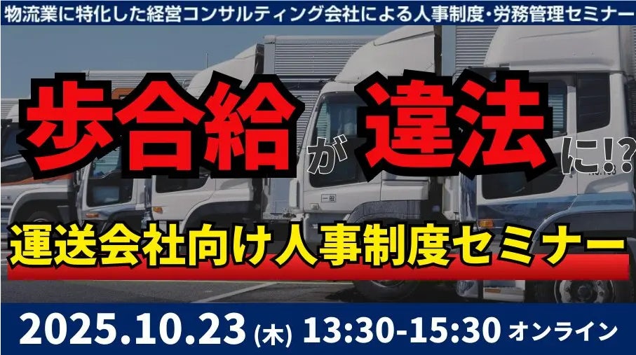 2025年10月23日(木)、運送会社・物流会社の経営者の方を対象にした「未払賃金訴訟と乗務員の連鎖離職を回避する賃金制度構築セミナー2025」をオンラインで開催しました。