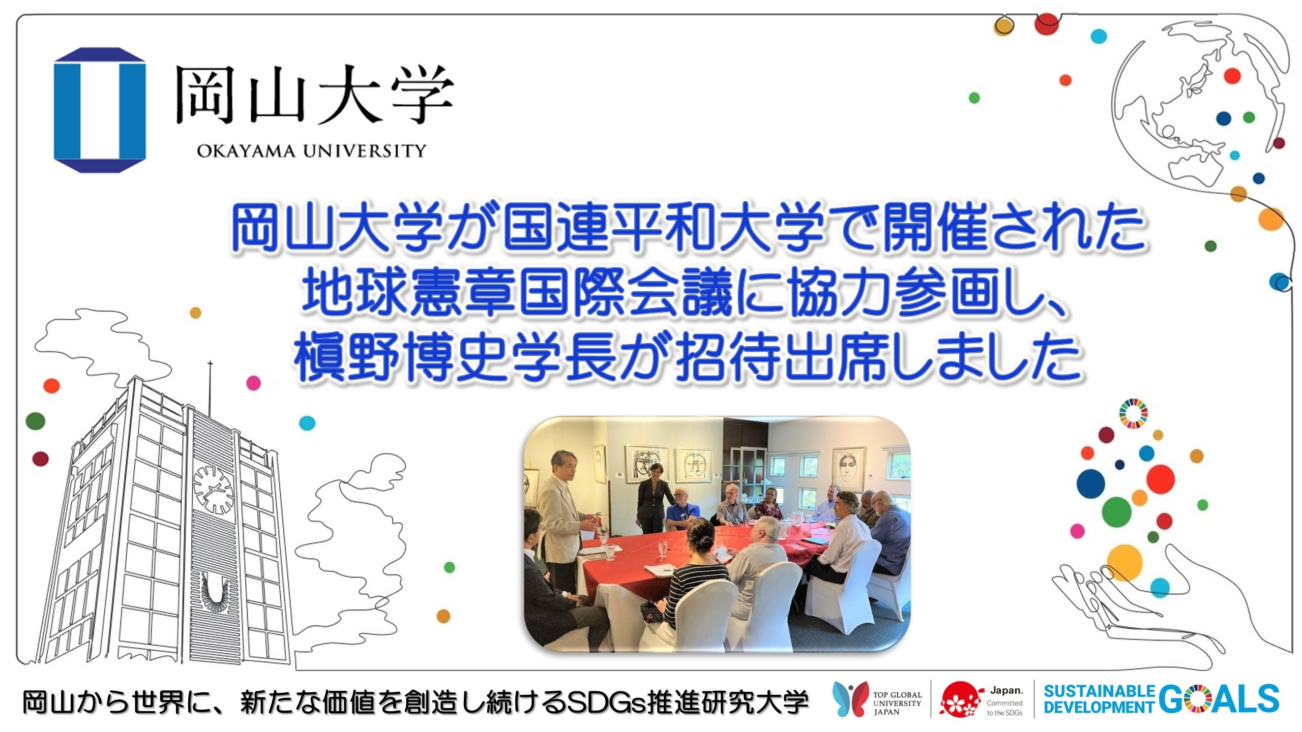 【岡山大学】岡山大学が国連平和大学で開催された地球憲章国際会議に協力参画し、槇野博史学長が招待出席しました