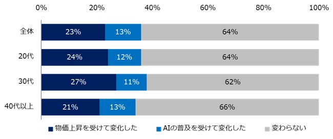 年代別、男女別「仕事選びの軸」調査。求職者の4人に1人が”物価上昇”により「仕事選びの軸を見直した」と回答。“AIの普及”も、1割の求職者の軸に影響。
