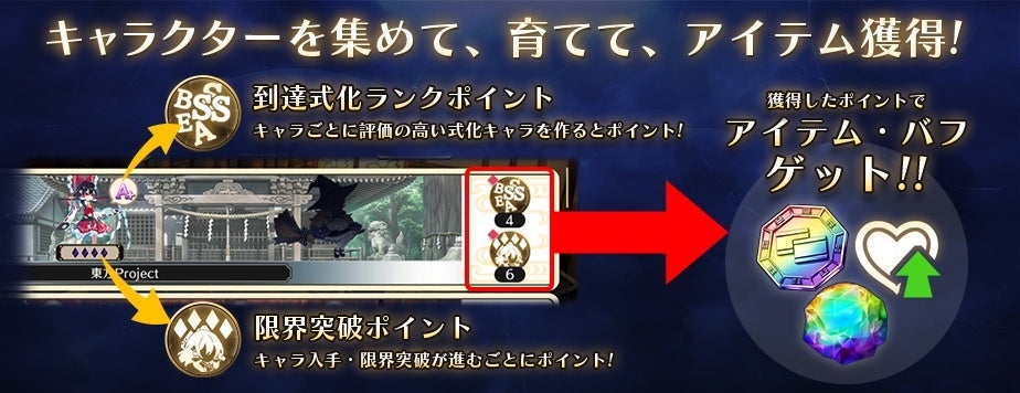 3月31日(月) のメンテナンスより、新機能「幻想記録帖」を実装、その他にもキャラクターの育成がもっと楽しくなる機能を追加、調整いたしました。