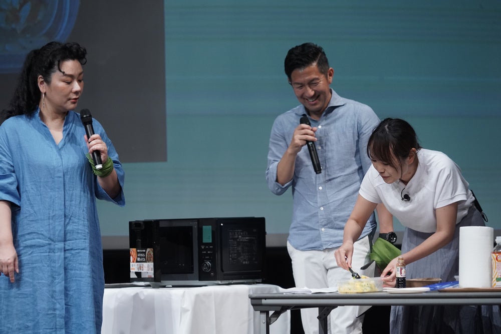 山本さんの代名詞「電子レンジで一発でできちゃう!」そんなレシピに会場が沸きました。