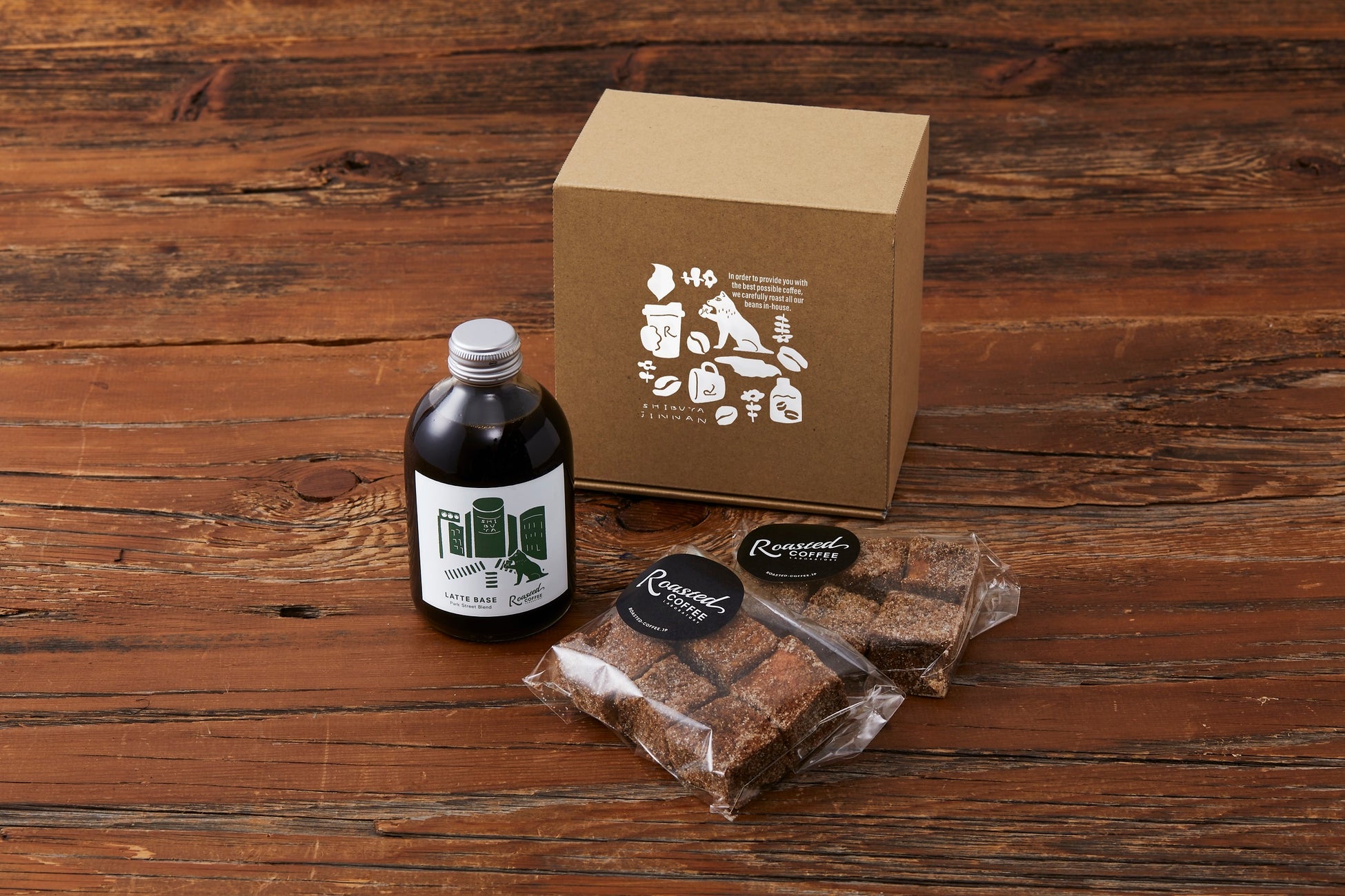 自家焙煎の豆で作った優しい甘さのラテベースと、コーヒーラスク(2袋)のセット。