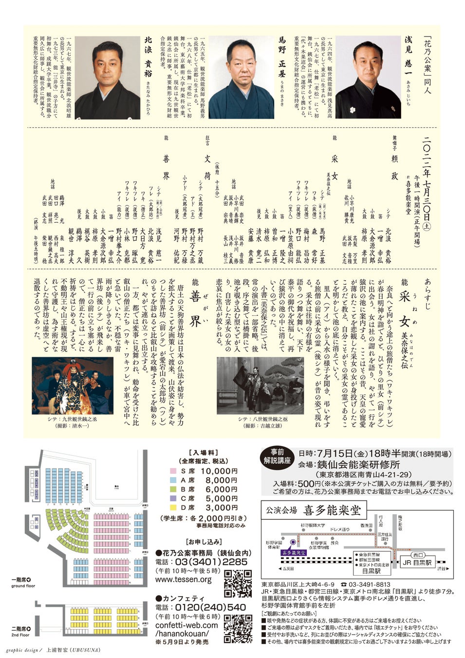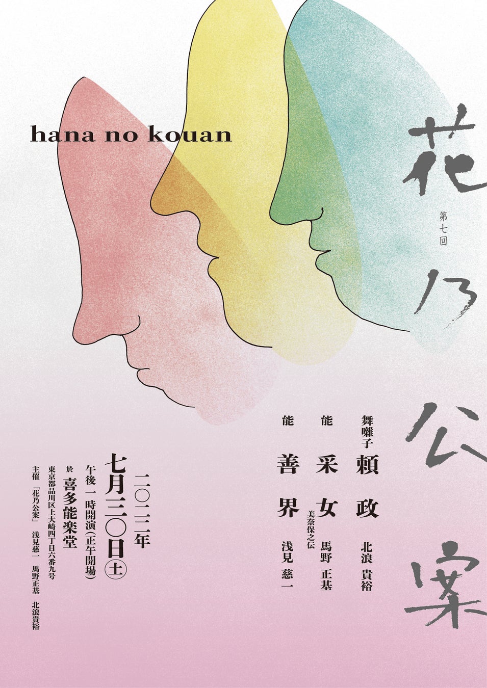 『第7回花乃公案』が2022年7月30日 (土)に喜多能楽堂(東京都品川区)にて開催されます。チケットはカンフェティ(運営:ロングランプランニング株式会社、東京都新宿区、代表取締役:榑松 大剛)にて発売中です。