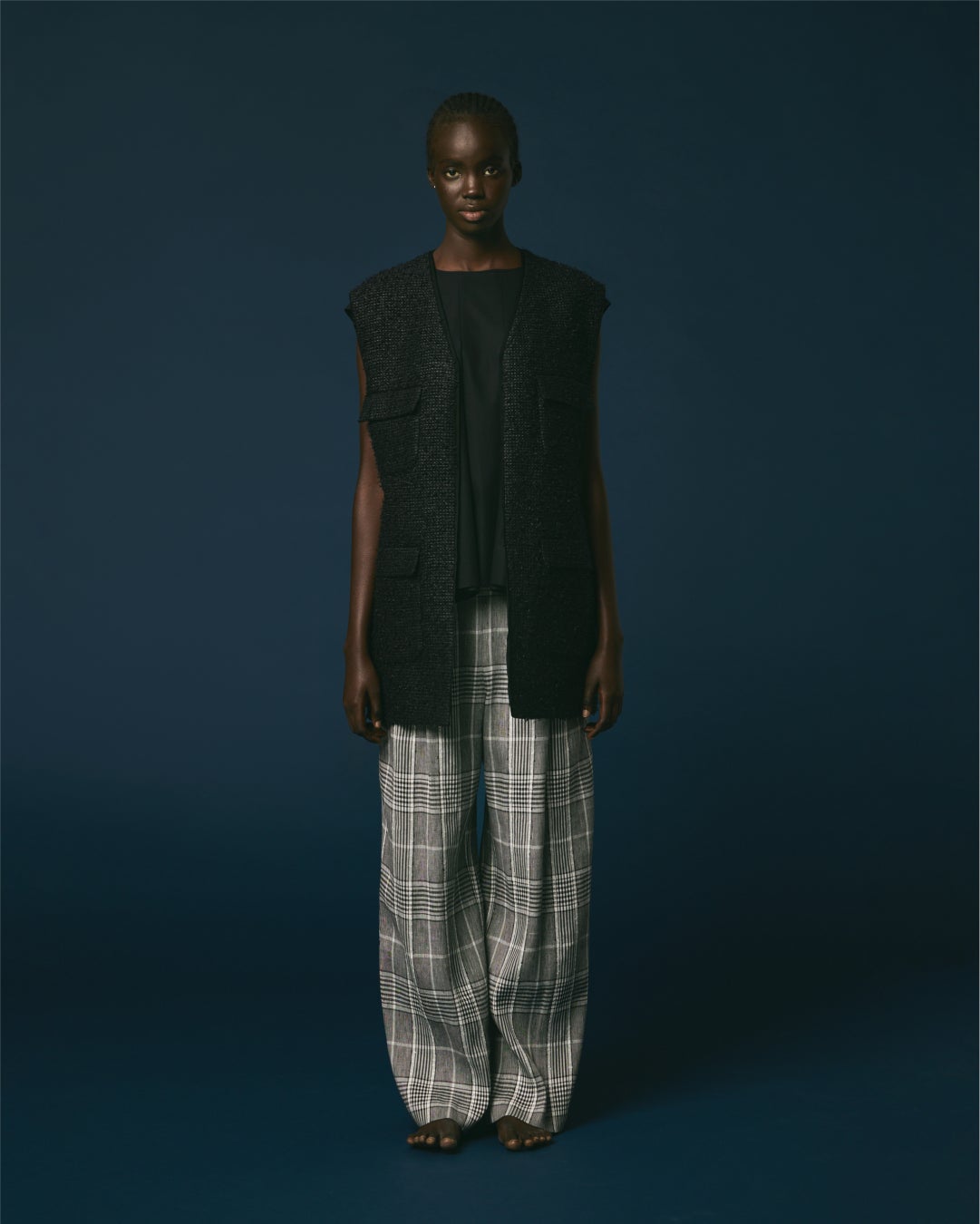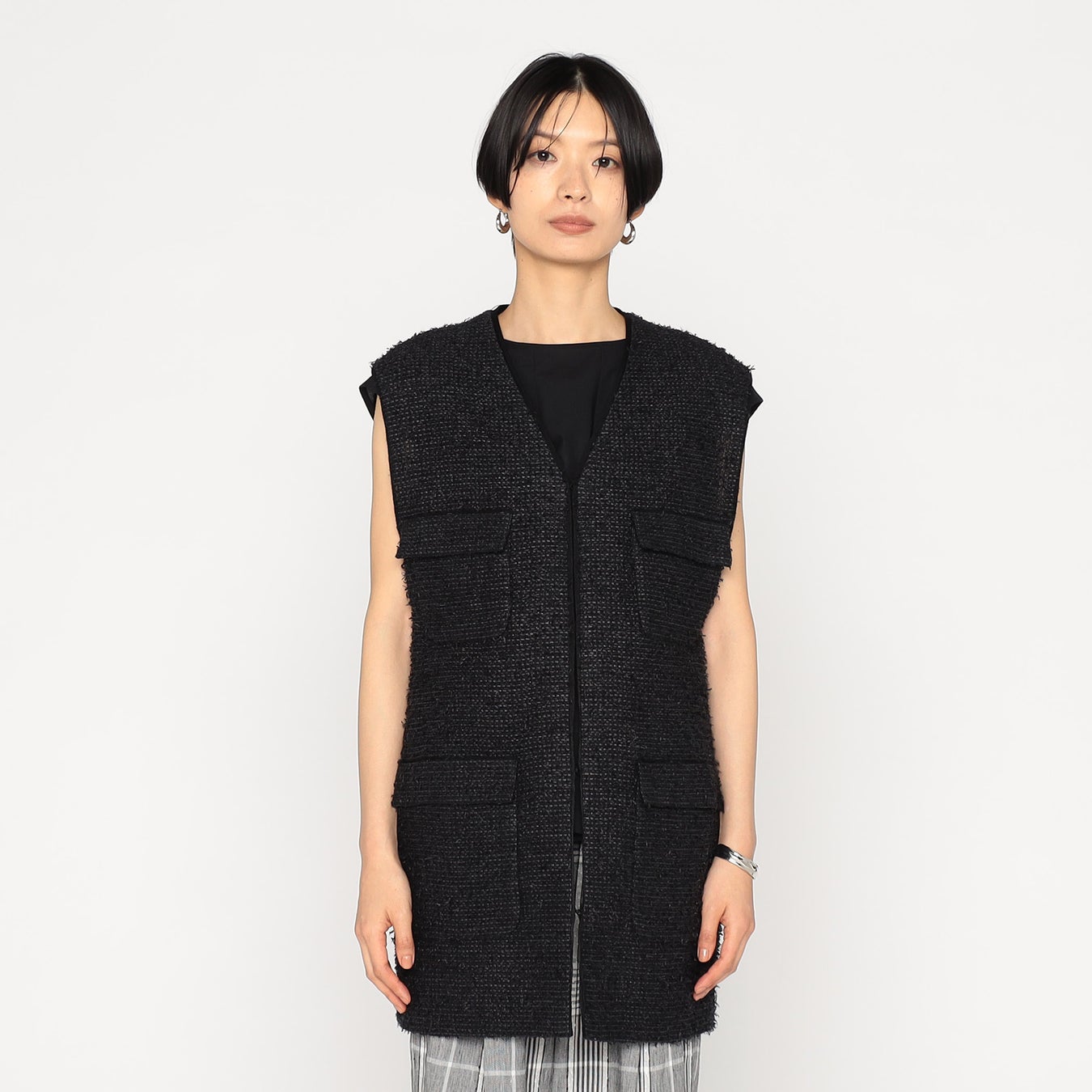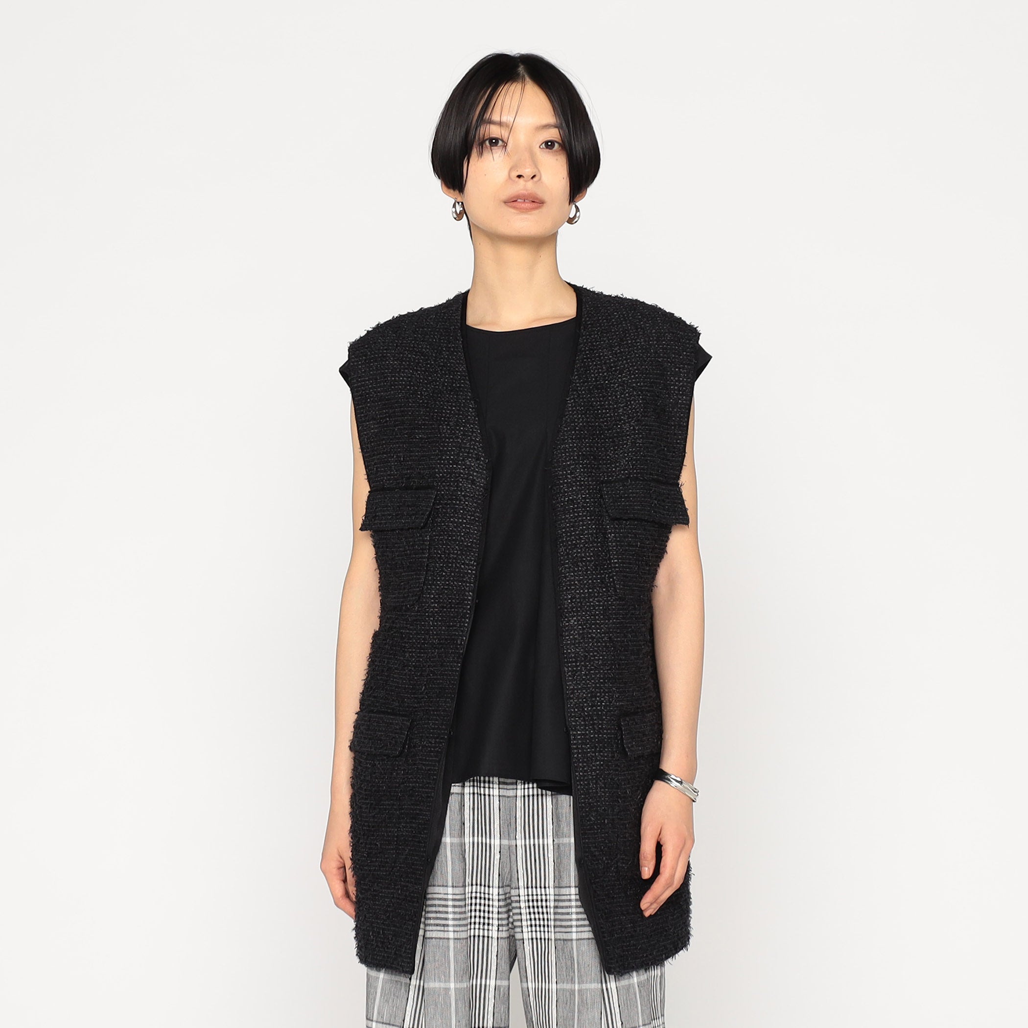 ・大きなポケットがポイントのジレ。あらゆる部分の始末をグログランテープにして、他にはないスッキリとした始末にこだわりました。