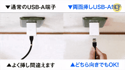 - USB-A端子の両面挿しタイプで挿し間違いを解消!