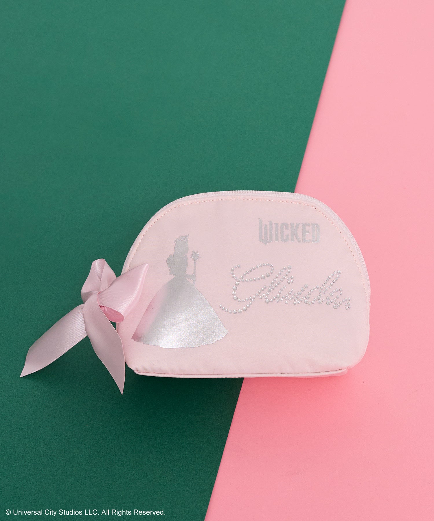 グリンダをイメージしたデザインは、劇中で纏うピンクのドレスから着想を得て、マットな質感のサテン生地にシルエットやティアラ、蝶のモチーフを箔プリントで施しました。また、“Glinda”のロゴにはラインストーンをあしらい、華やかさの中にも上品さが引き立つデザインに仕上げました。