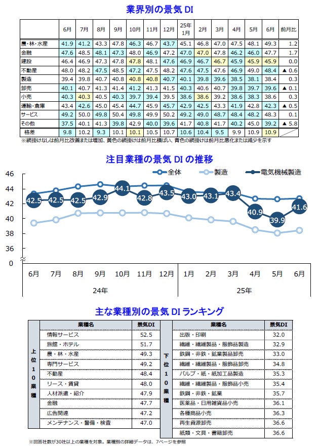 株式会社帝国データバンクは、2万6,237社を対象とした2025年6月の国内景気動向を調査・集計し、景気DIとして発表いたしました。