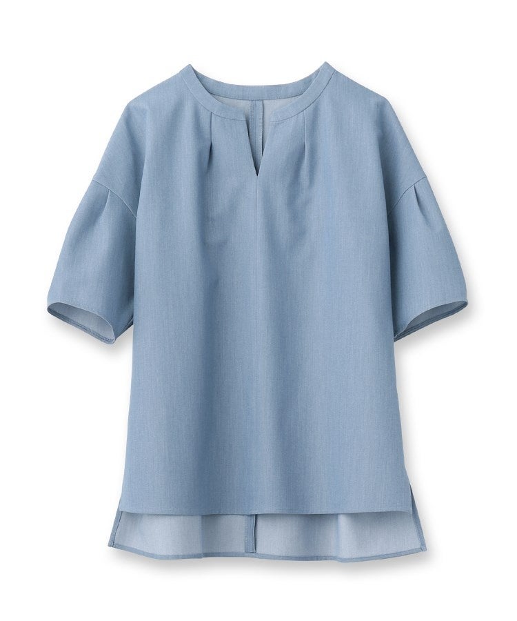 デニム調のミックス感のある表情が特徴のツイル素材のブラウス。