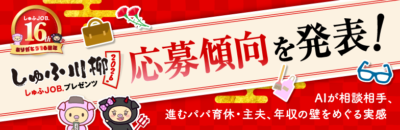 「しゅふJOBプレゼンツ しゅふ川柳」は、主婦・主夫の皆さまが日々の暮らしの中で感じた思いや気づきを、川柳として共有する企画です。家事や仕事、子育てに向き合う日常の中で生まれる笑いや戸惑いが、五・七・五の言葉にのせて表現されています。第4回となる今回は募集部門を刷新し、より多様なテーマで作品を募集しました。入賞作品は2026年4月に特設サイトにて発表予定です。
