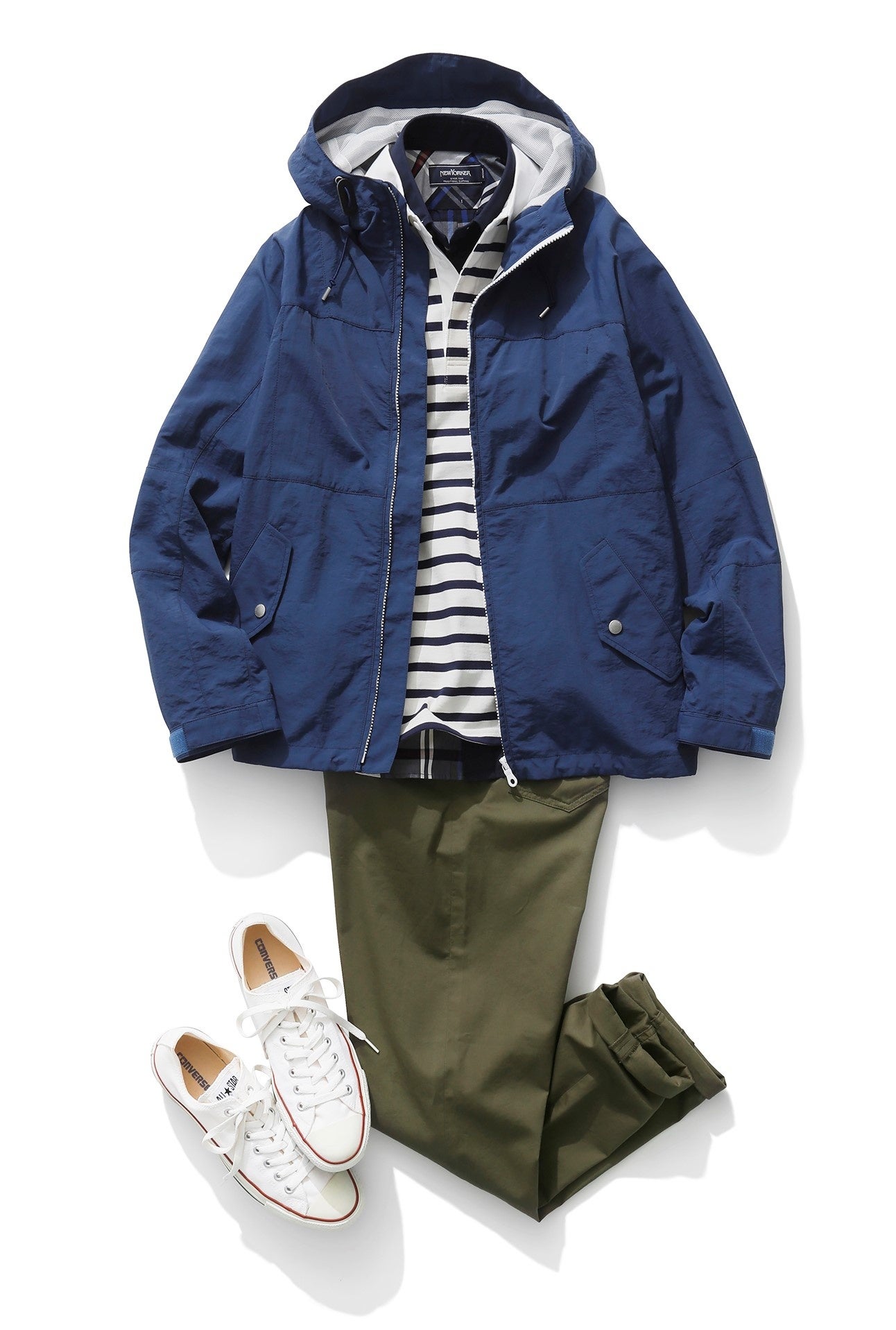 春夏シーズン展開される多彩なラインナップの中から、今シーズンのテーマに相応しいマリンテイストのアイテムを3つピックアップしてご紹介!春先の羽織りに最適な「マリンパーカ」と、単品でもコーディネートが成立するニット素材の「ボーダーニットソー」。そして、ターンナップ仕様の脇ポケットが特徴の「マリンパンツ」の3アイテムをコーディネートも交えてご紹介します。