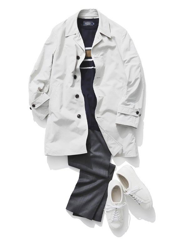 気温が上がりファッションが華やかになる春は、スプリングコートを羽織って軽快感を演出。ドレスパンツと組み合わせることで、ヒネリの効いたきれいめスタイルが完成します。