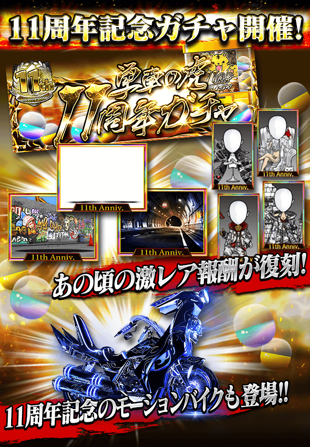 11周年を迎えた『暴走列伝 単車の虎』11周年記念バイクや、11周年抗争最強決定戦など豪華キャンペーンを開催!