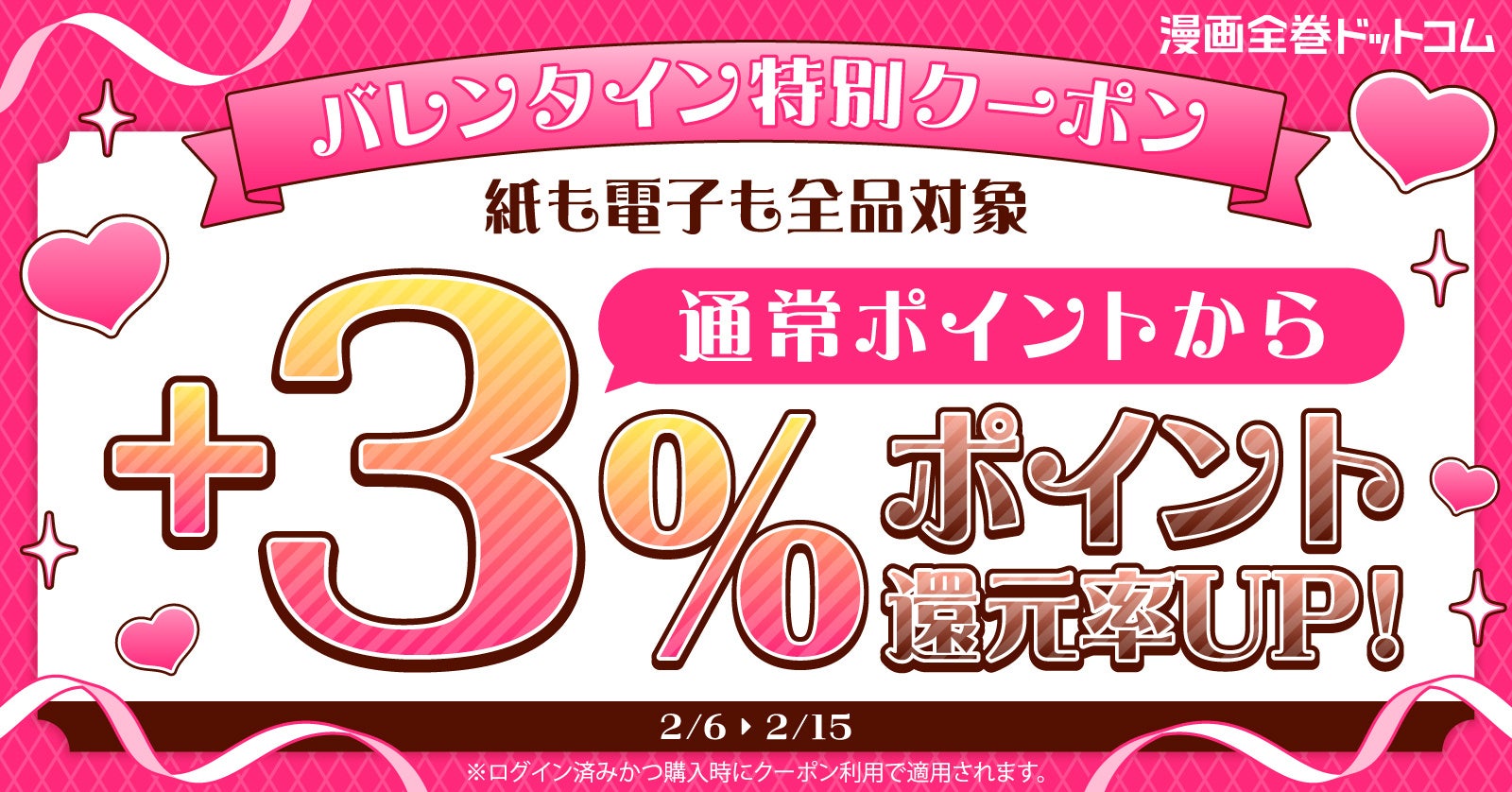 ★全品対象★ポイント還元率+3%UPクーポン配布!バレンタイン特別キャンペーン【漫画全巻ドットコム】