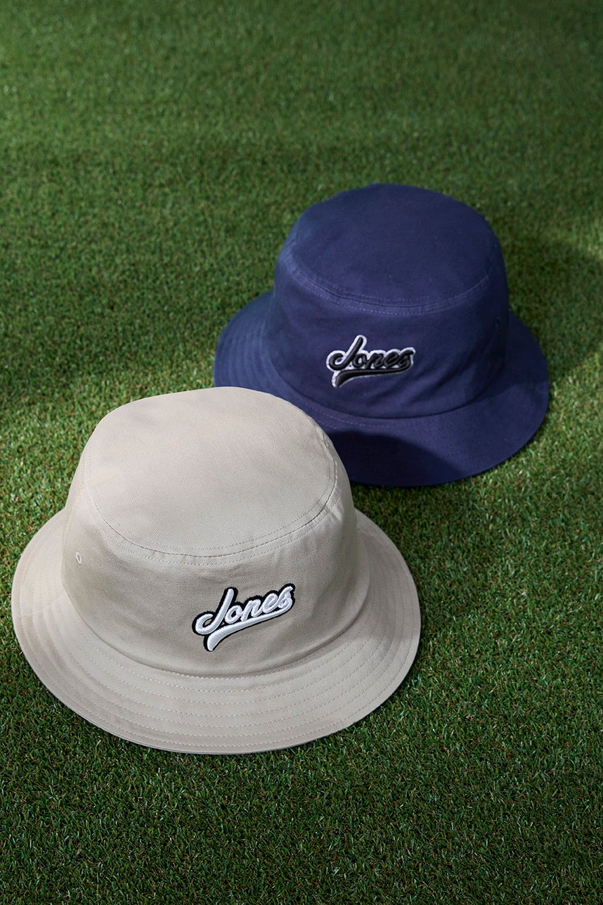 フロントにJONESの立体ロゴ刺繍を配した、シンプルながらもシルエットにこだわったバケットハット。光沢感のあるツイル素材を使用した、耐久性にも優れたアイテム。