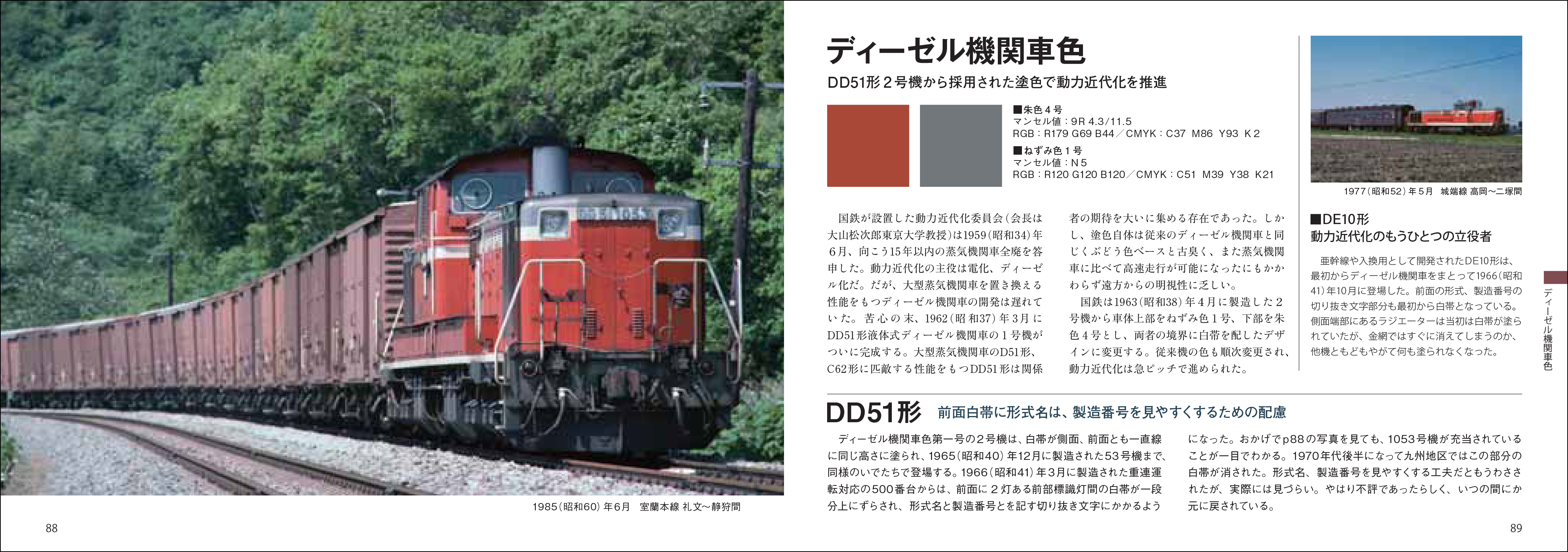 本書では、1983年に発行された国鉄最後の「国鉄車両関係色見本帳」を基に、1950年代から1980年代までの塗装を年代別に紹介しています(全ての塗色が掲載されているわけではありません)。