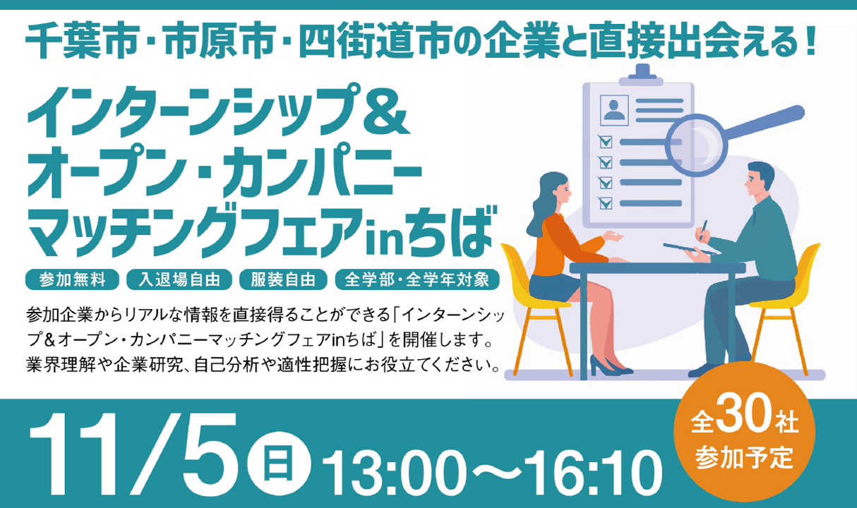 11月5日(日)「インターンシップ&オープン・カンパニーマッチングフェアinちば」を開催します。