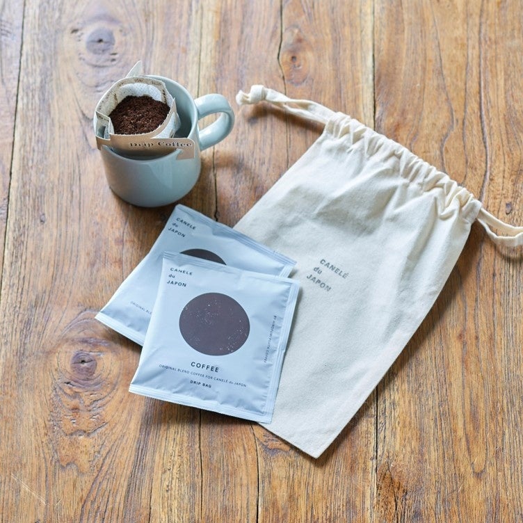 「カヌレ堂」オリジナルのドリップバッグコーヒーは、大阪・玉造の人気ロースタリー「ヒロフミフジタコーヒー」に“カヌレとコーヒー、お互いを引き立てあえる味を”とオーダー。ぜひカヌレと一緒に味わってほしいコーヒーです。