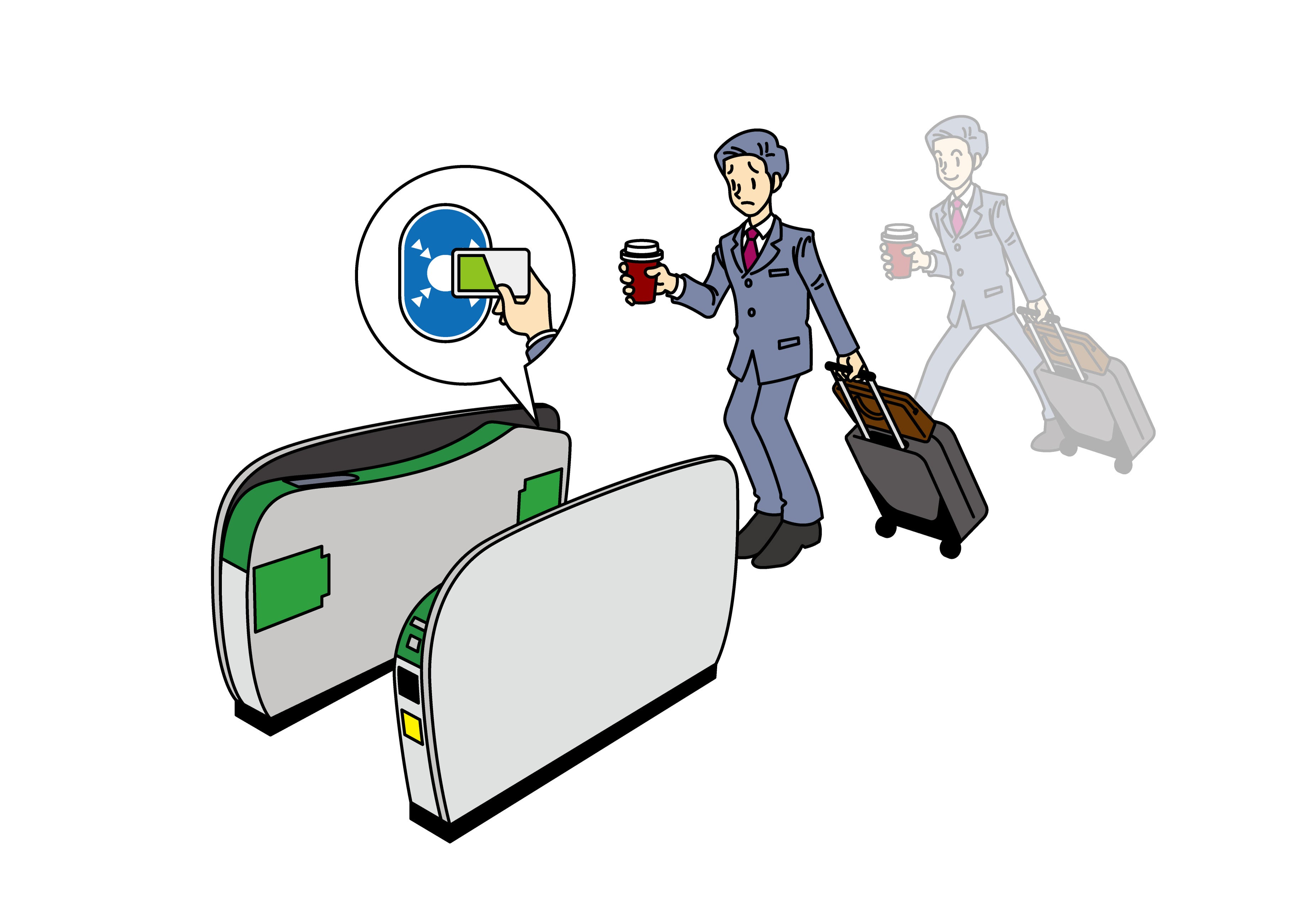 ○ウォークスルー改札により、きっぷの投入やSuicaのタッチをなくすことで両手に大きな荷物をお持ちのお客さまやベビーカーをご利用のお客さまの通過の利便性を向上させます。さらに国内ばかりでなく、海外からのお客さまにもウォークスルー改札をご利用いただけるよう開発を進めていきます。