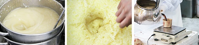 自然素材を丸ごと使った石けんは、自然ゆえに素材の個体差や気温などの影響を受け、季節によって仕上がりが変わってしまいます。そこで、石けん職人の池田さんは、仕上がりを「試食」という方法で確かめています。人間の感覚でもっとも鋭敏だと言われる味覚のセンサーで確認して、料理の味付けのように繊細に品質を微調整しているのです。
