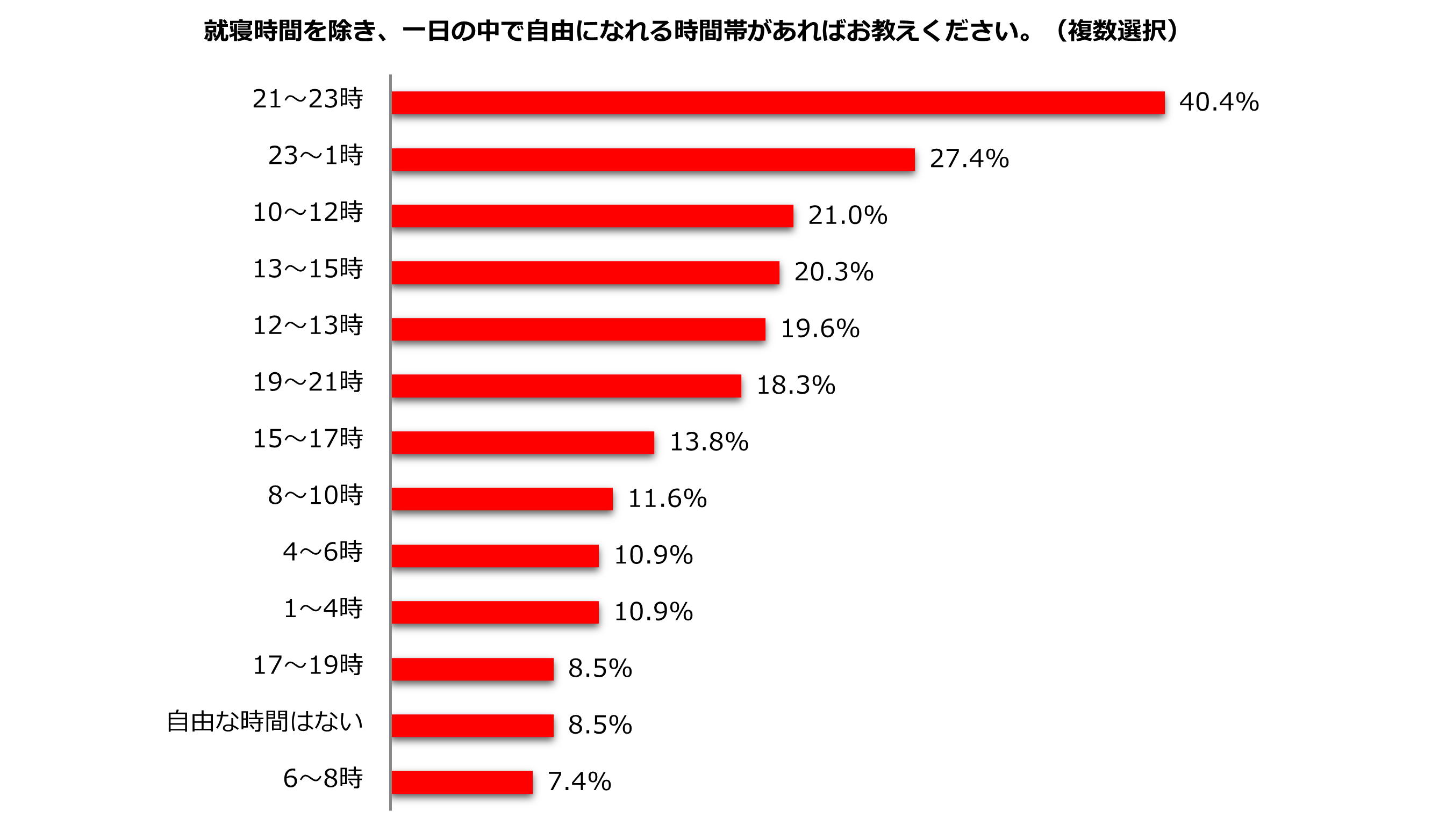 1.就寝以外で自由になれる時間帯「21~23時」40.4%、「6~8時」7.4%