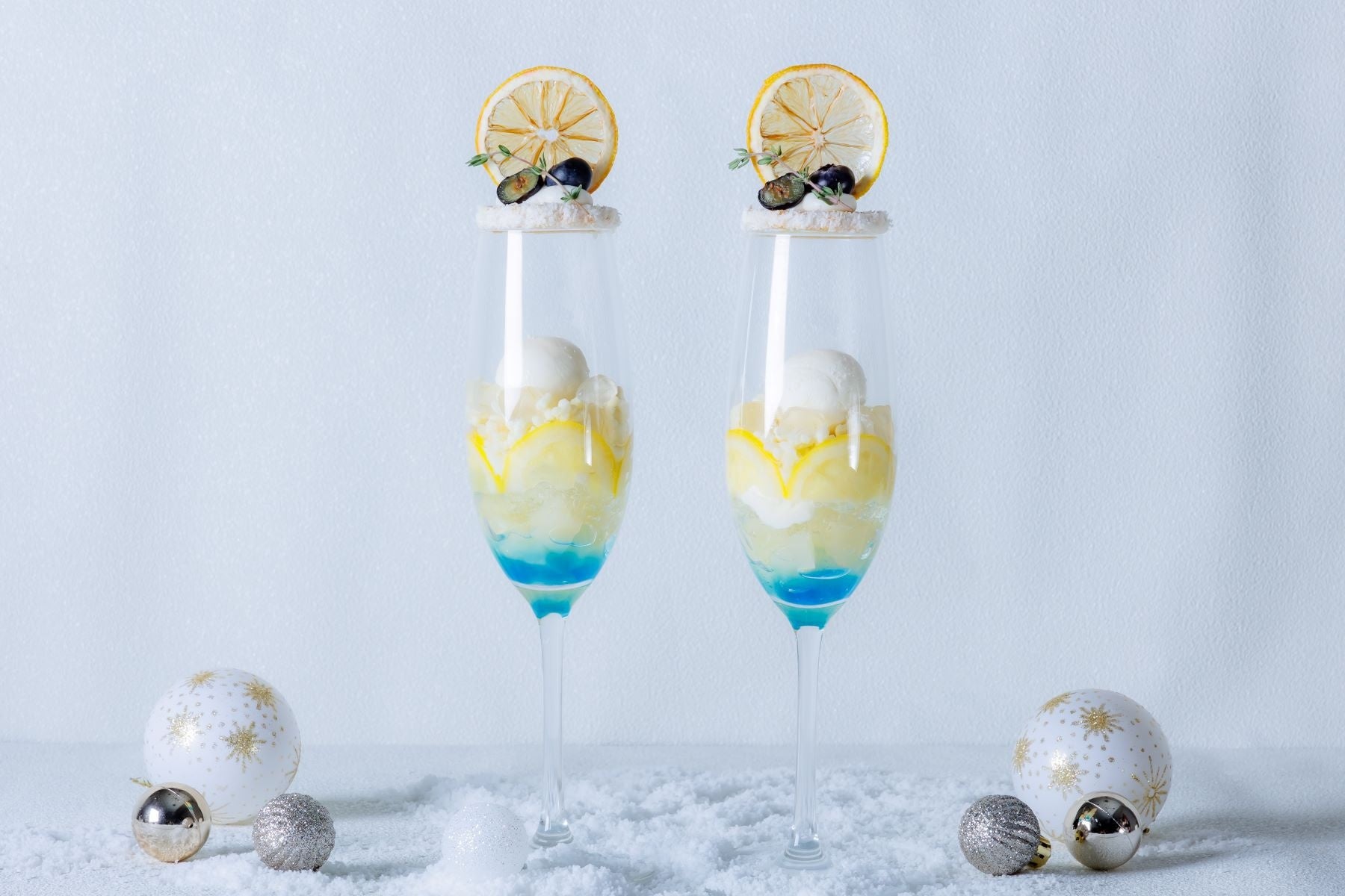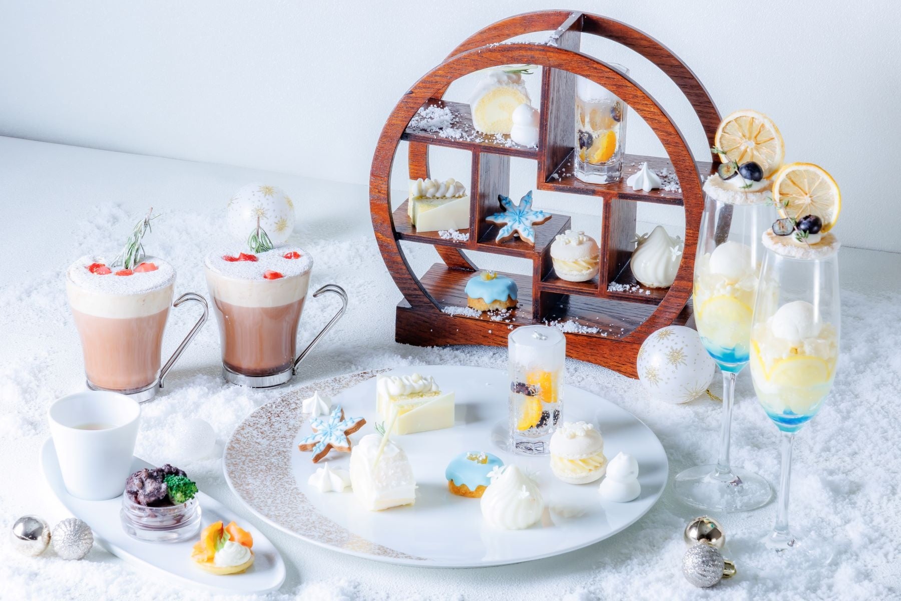 【京都】降り積もる真っ白な雪から着想を得た和・洋の食材で楽しむ“はんなりスイーツ”!青と白が基調の「洋梨と檸檬のスノーホワイトパフェ」付き『はんなりアフタヌーンティー~雪化粧~』
