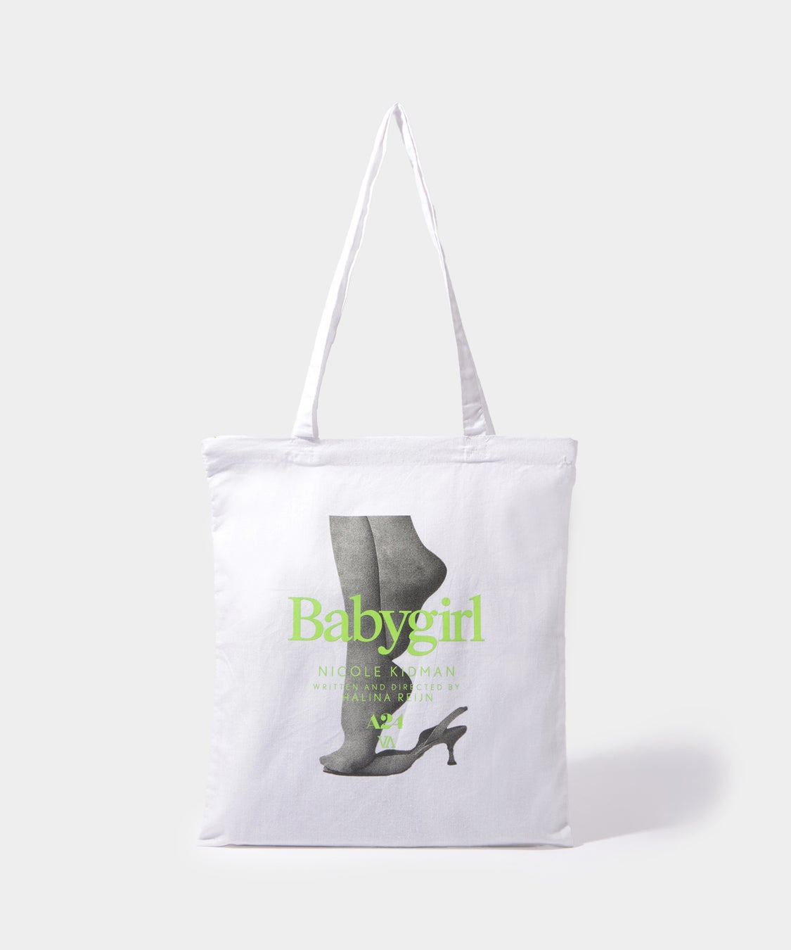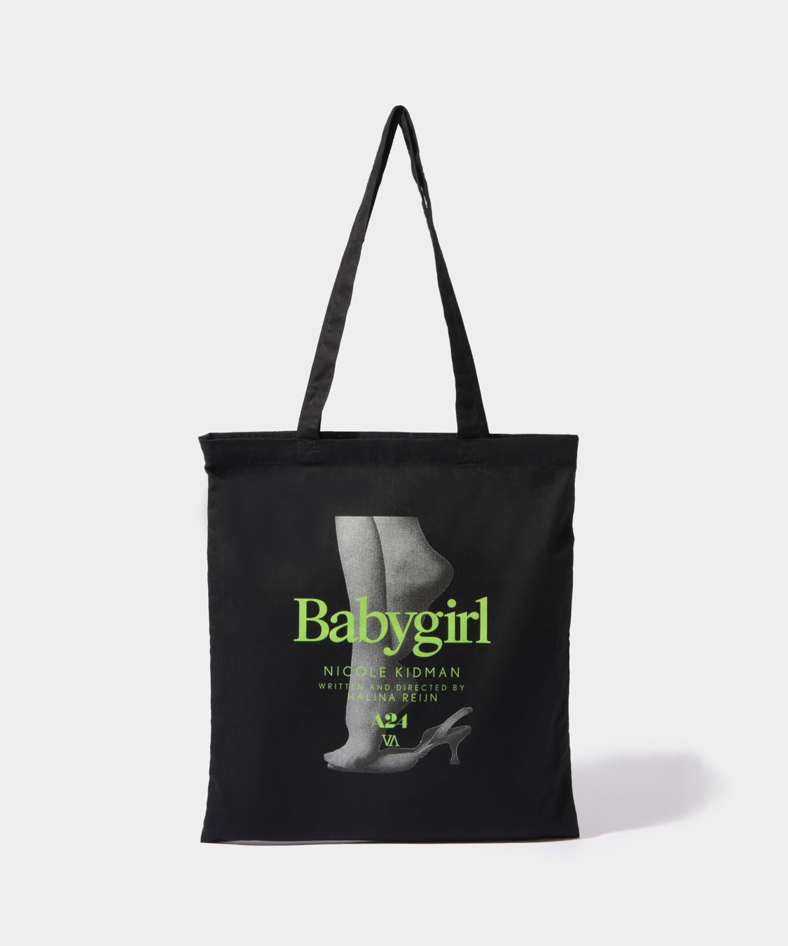今回のコラボレーションでは、ニコール・キッドマンの鮮烈な演技で、”A24史上最高に挑発的!”と話題のエロティック・エンターテインメント作品『ベイビーガール』をモチーフにしたアイテムを店舗とオンラインストアで展開します。劇中で鍵となる犬、ハイヒールなどのグラフィックをTシャツやスウェット、トートバッグに落とし込んだエクスクルーシブアイテムに加え、「V.A.」と「A24」の両ロゴをあしらったアイテムなど、全14型を展開いたします。