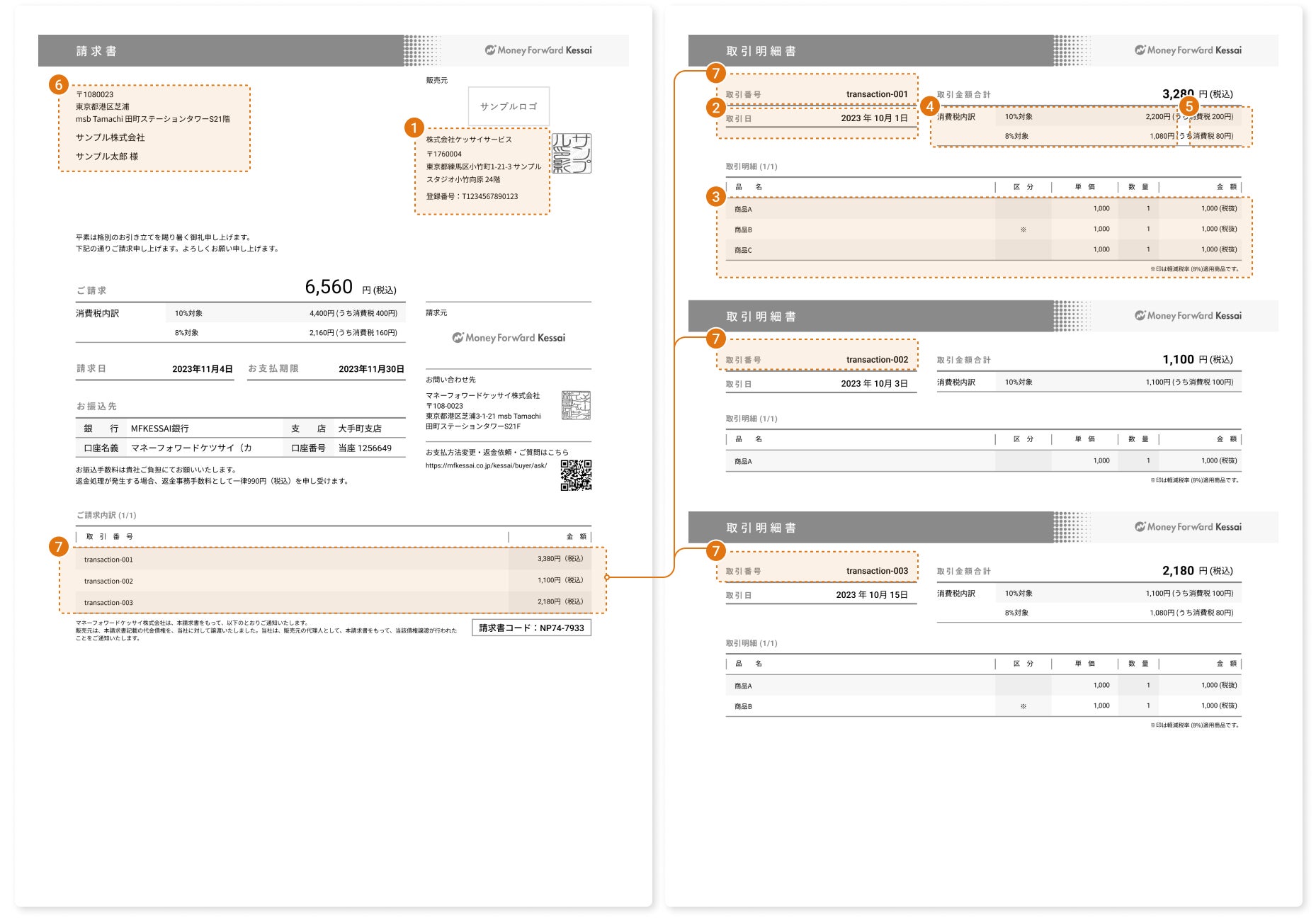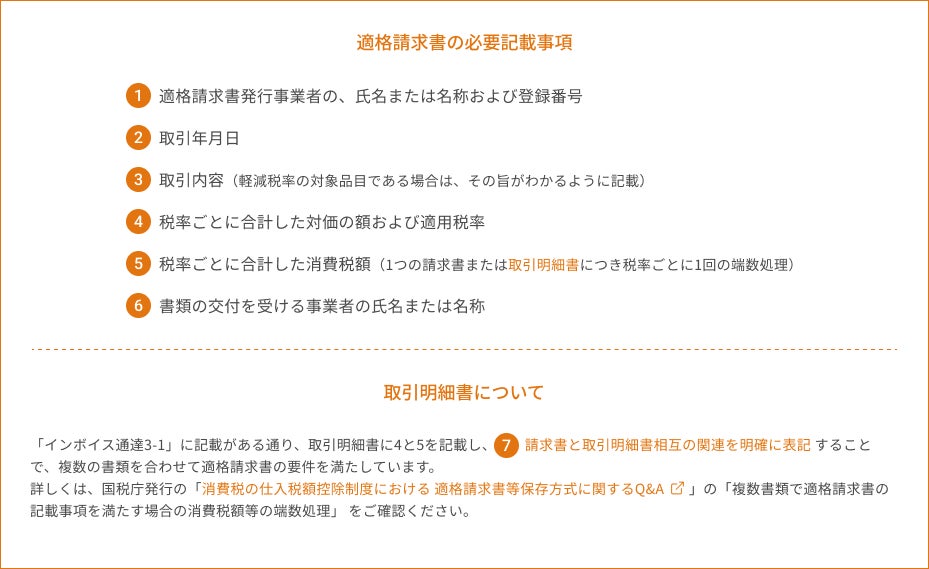 <複数書類でインボイス制度の必須項目を満たしたインボイスを発行>