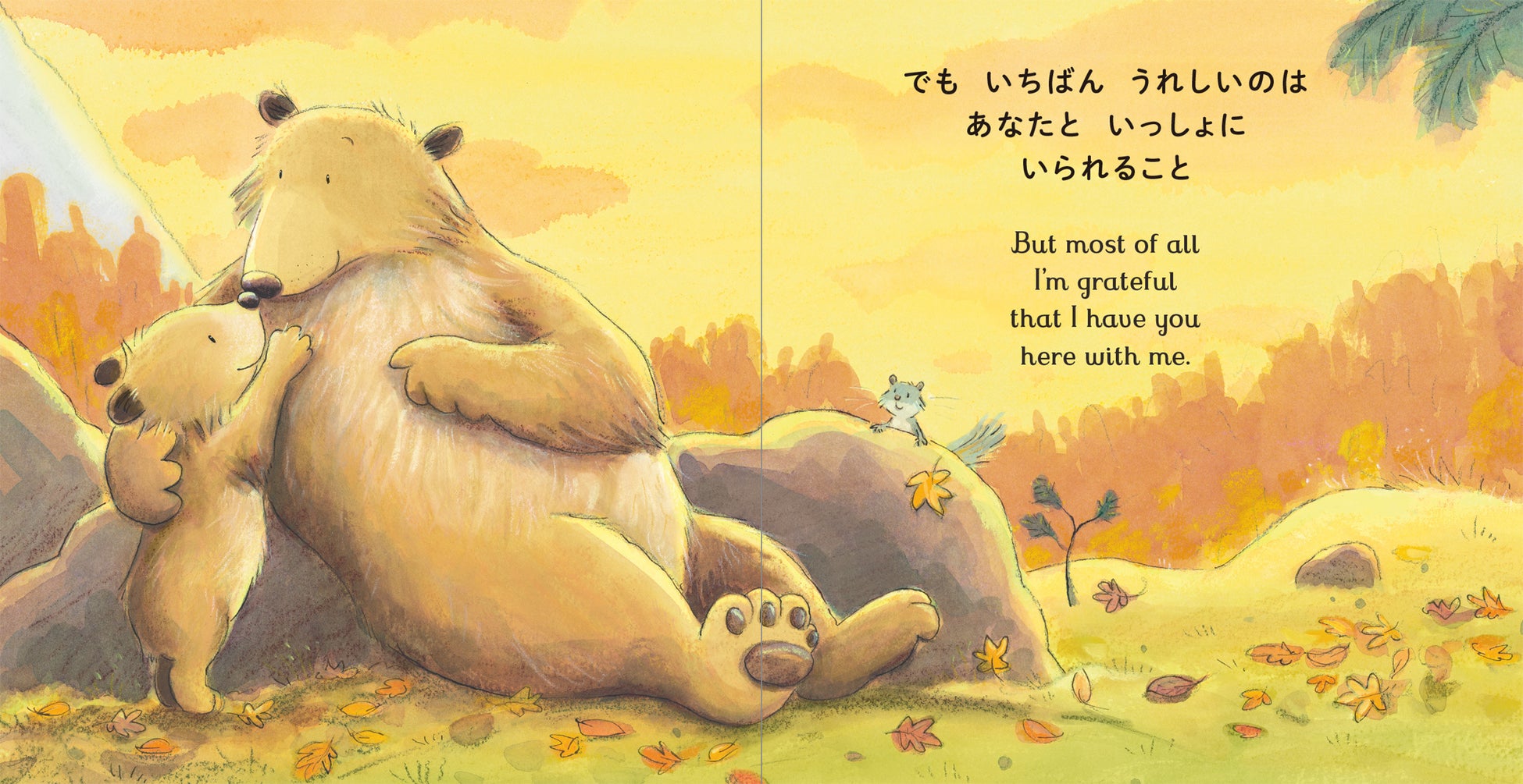 本書では、親のクマが子グマちゃんと四季を共に過ごして、一年を通じて子どもへの変わらぬ温かい愛情を伝えます。春の新芽のようにぐんぐん育つ子グマちゃんの姿に喜び、夏になると太陽の下で水遊びする楽しい日々がやってきます。秋になると2匹は落ち葉遊びを楽しんで、そして再び冬が訪れ、親子はあいいろの空の下で仲良くだっこですやすや眠りにつきます。親子間の愛情を温かく育む、寝る前に小さなお子様と一緒に楽しむのにぴったりの1冊です。