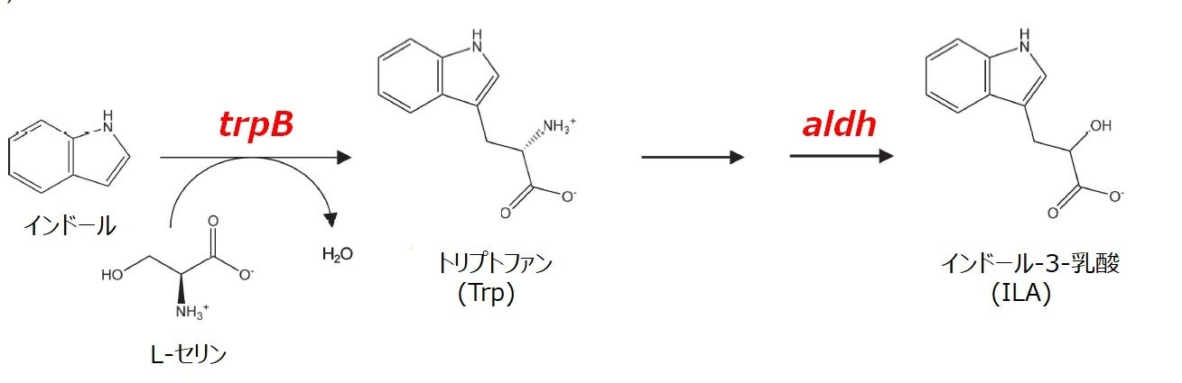 【図3 インドールからインドール-3-乳酸(ILA)への代謝経路と関与遺伝子】