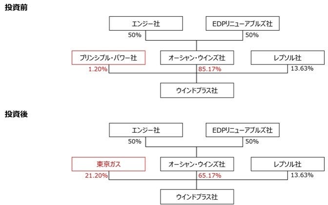 東京ガス株式会社(社長:笹山 晋一、以下「東京ガス」)は、このたび、ポルトガルで稼働中の浮体式洋上風力発電所「ウインドフロート・アトランティック」を運営するウインドプラス社への投資について、売主であるオーシャン・ウインズ社と合意しました。この投資により、東京ガスは2020年5月に出資したプリンシプル・パワー社の共同株主であるオーシャン・ウインズ社との共同事業者となり、海外浮体式洋上風力発電事業へ初めて参画(以下「本事業参画」)します。