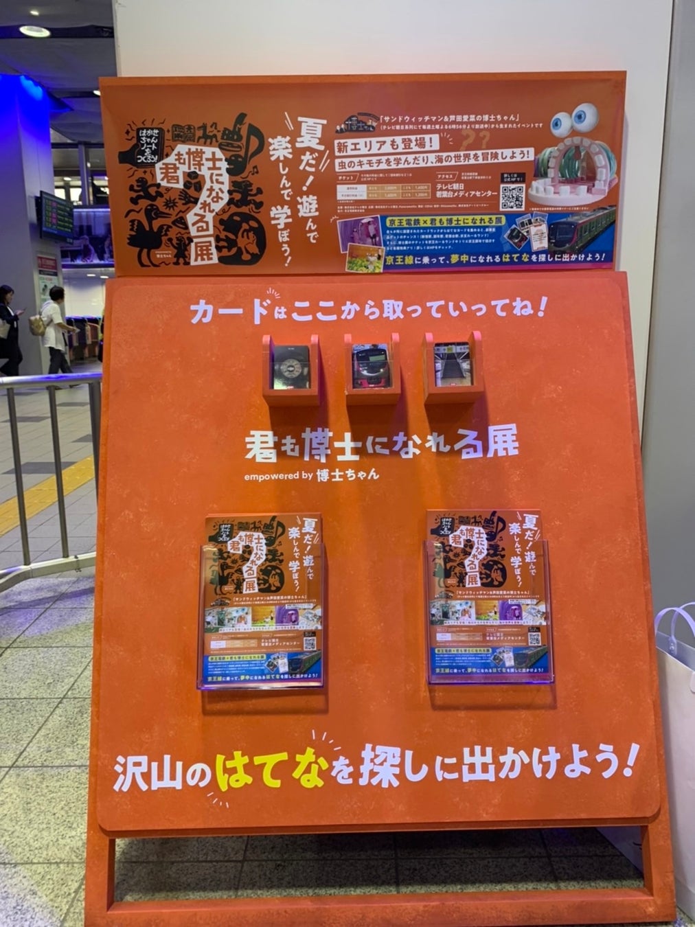 ①京王線沿線の3カ所(新宿駅、調布駅、若葉台駅)で配布する「宇宙にまつわる不思議や知識を記載したはてなカード」を集め、「君も博士になれる展」会場へ持参された方全員にプレゼント。