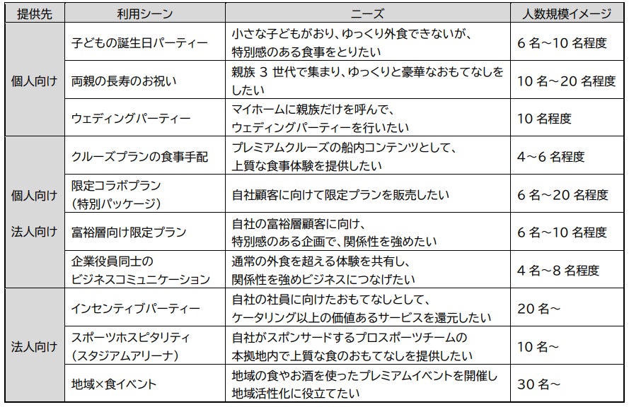 ・料理マスターズパック:料理マスターズ倶楽部と連携し、農林水産省の顕彰受賞者である日本を代表する料理人とコラボレーションした特別パッケージプランを開発予定