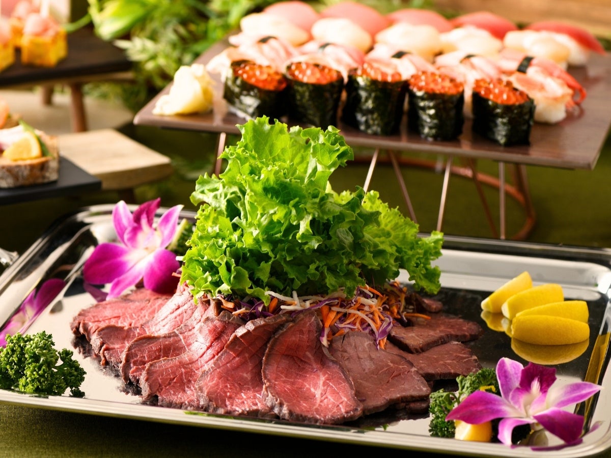 すべてのコースに『ローストビーフ』、『にぎり寿司』が付き、更に飲み放題!