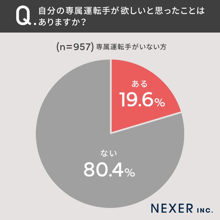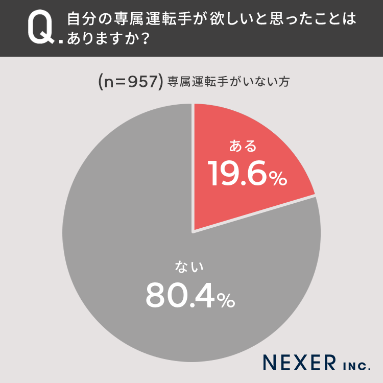 19.6%の方が、自分の専属運転手が欲しいと思ったことが「ある」と回答しています。